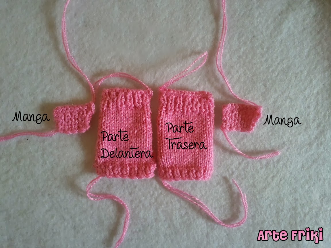 Como ves en la imagen, tejo todas las partes del jersey por separado. Suelo usar aguja de 3.25 - 3.5mm